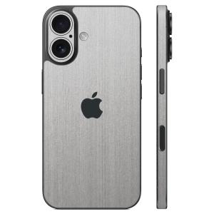 - iPhone16 / 16 Pro / 16 Plus / 16 Pro Max / 16e スキンシール 背面 側面 カバー ケース wraplus シルバーブラッシュメタル