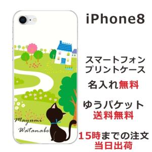 - iPhone8 ケース アイフォン8 カバー らふら 黒猫 お散歩