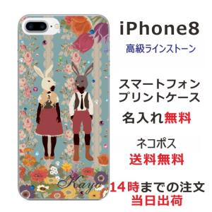 - iPhone8 ケース アイフォン8 カバー ラインストーン かわいい らふら うさぎ カップル