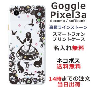 - Google Pixel3a ケース グーグルピクセル3a カバー ラインストーン かわいい らふら 名入れ フラワー プリンセス