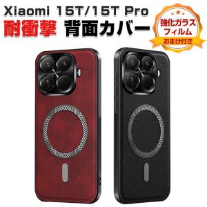 シャオミ Xiaomi 15T 15T Pro用の衝撃に強い TPU+PUレザー素材 便利 人気 マグネット充電 カバー 耐衝撃 ケース 背面カバー おすすめ CASE 強化ガラス付き