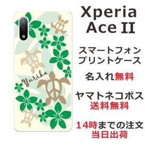 - Xperia Ace II SO-41B エクスペリアエース2 らふら 名入れ スマホケース ハワイアン グリーン ホヌ