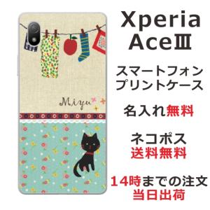 - Xperia Ace III SO-53C エクスペリアエース3 らふら 名入れ スマホケース 黒猫 洗濯物