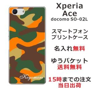 - Xperia Ace ケース SO-02L エクスペリアエース カバー らふら 名入れ 迷彩 オレンジ