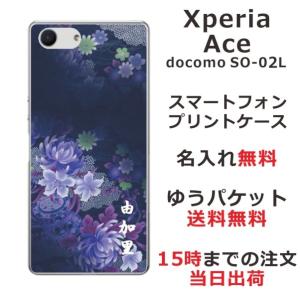 - Xperia Ace ケース SO-02L エクスペリアエース カバー らふら 名入れ 和柄 和花青紫グラデ