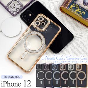 - iPhone12 iPhone12 Pro ケース ソフトケース MagSafe対応 メタリックカラー ラインストーン カバー アイホン スマホケース