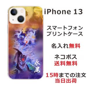 - iPhone13 アイフォン13 らふら 名入れ スマホケース 和柄 龍虎蒼橙