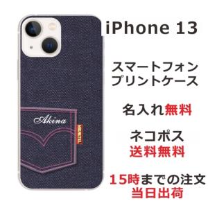 - iPhone13 アイフォン13 らふら 名入れ スマホケース デニムプリントケース