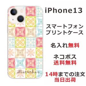 - iPhone13 アイフォン13 らふら 名入れ スマホケース 北欧デザイン カラフル フラワー