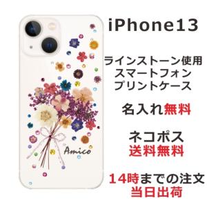 - iPhone13 アイフォン13 らふら 名入れ スマホケース ラインストーン スマホカバー 押し花風 ブーケフラワー