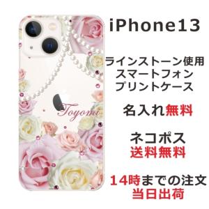 - iPhone13 アイフォン13 らふら 名入れ スマホケース ラインストーン スマホカバー 押し花風 ローズピンク