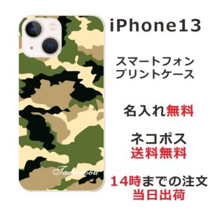 - iPhone13 アイフォン13 らふら 名入れ スマホケース 迷彩 グリーン