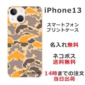 - iPhone13 アイフォン13 らふら 名入れ スマホケース 迷彩 オレンジ