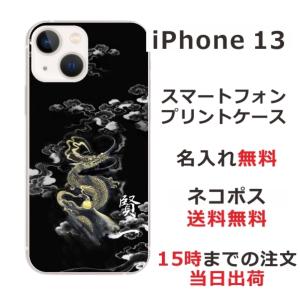 - iPhone13 アイフォン13 らふら 名入れ スマホケース 和柄 漆黒雲海龍