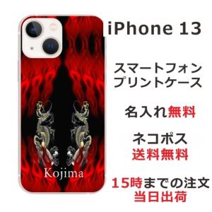 - iPhone13 アイフォン13 らふら 名入れ スマホケース 和柄 炎闇双龍