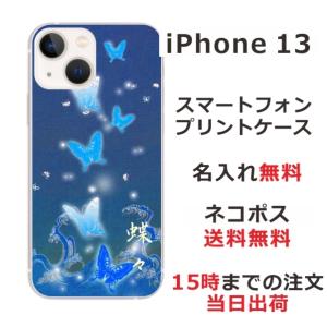 - iPhone13 アイフォン13 らふら 名入れ スマホケース 和柄 蒼波光蝶