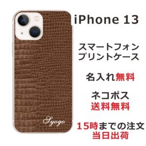 - iPhone13 アイフォン13 らふら 名入れ スマホケース クロコダイル ブラウン