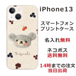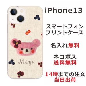 - iPhone13 アイフォン13 らふら 名入れ スマホケース フェルト風プリントベア