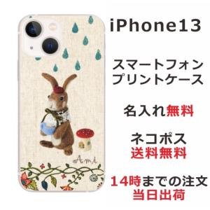 - iPhone13 アイフォン13 らふら 名入れ スマホケース 雨降りうさぎ