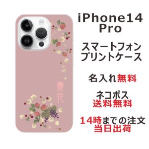 - iPhone14 Pro アイフォン14プロ らふら 名入れ スマホケース 和柄 和花イチゴ