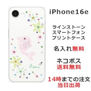 - iPhone16e アイフォン16e らふら 名入れ スマホケース ラインストーン ドルフィン