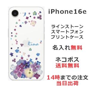 - iPhone16e アイフォン16e らふら 名入れ スマホケース ラインストーン スマホカバー 押し花風 フラワーアレンジカラフル