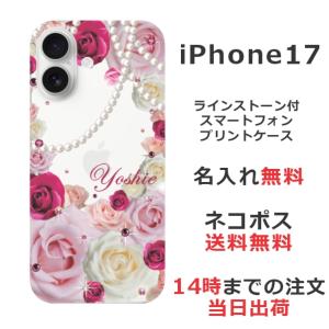 iPhone17 アイフォン17 らふら 名入れ スマホケース ラインストーン スマホカバー 押し花風 ローズダークピンク