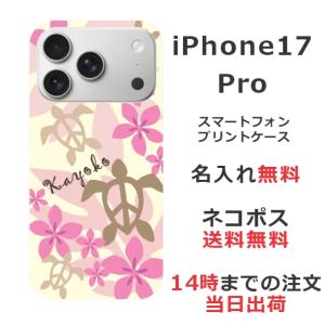 iPhone17 Pro アイフォン17プロ らふら 名入れ スマホケース ハワイアン ピンク ホヌ
