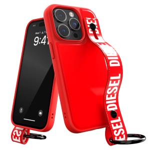 - 送料無料 DIESEL ディーゼル アイフォン カバー スマホケース ハンドストラップ TPU レッド ベルト スタンド機能 耐衝撃 TPU 各機種対