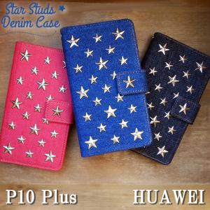 - P10Plus ケース カバー 手帳 手帳型 P10 Plus スタースタッズデニム P10Plusケース P10Plusカバー HUAWEI ファーウェイ P10 プラス