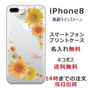 - iPhone8 ケース アイフォン8 カバー ラインストーン かわいい らふら フラワー 花柄 押し花風 オレンジ