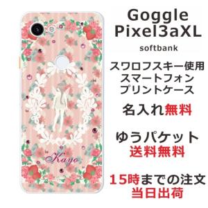 Google Pixel 3aXL ケース グーグルピクセル3aXL カバー ラインストーン かわいい らふら 名入れ フェアリーピンク