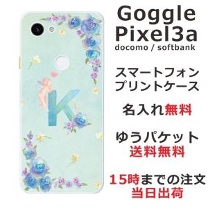 - Google Pixel3a ケース グーグルピクセル3a カバー らふら 名入れ イニシャルエンジェル ライトグリーン