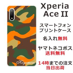 - Xperia Ace II SO-41B エクスペリアエース2 らふら 名入れ スマホケース 迷彩 オレンジ