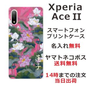 - Xperia Ace II SO-41B エクスペリアエース2 らふら 名入れ スマホケース 和柄 蓮花ピンク