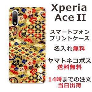 - Xperia Ace II SO-41B エクスペリアエース2 らふら 名入れ スマホケース 和柄 千代紙ゴールド