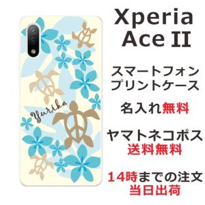 - Xperia Ace II SO-41B エクスペリアエース2 らふら 名入れ スマホケース ハワイアン ブルー ホヌ