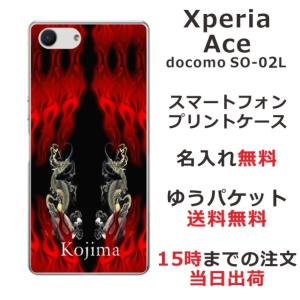 - Xperia Ace ケース SO-02L エクスペリアエース カバー らふら 名入れ 和柄 炎闇双龍