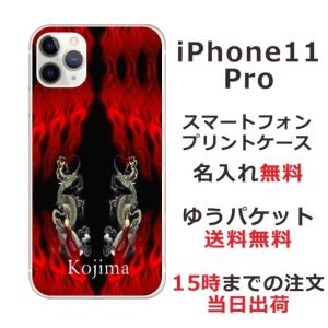 - iPhone11 Pro ケース アイフォン11プロ カバー らふら 名入れ 和柄 炎闇双龍