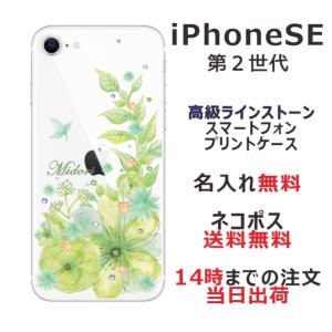 - iPhone SE 第2世代 らふら 名入れ スマホケース ラインストーン スマホカバー 押し花風 ボタニカル グリーン