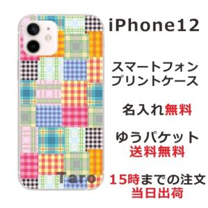- iPhone12 ケース アイフォン12 カバー らふら 名入れ カラフル チェック
