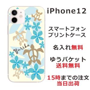 - iPhone12 ケース アイフォン12 カバー らふら 名入れ ハワイアン ブルー ホヌ