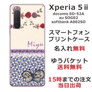 - Xperia 5 II SO-52A SOG02 A002so エクスペリア5 II らふら 名入れ スマホケース 蝶 パープルフラワー