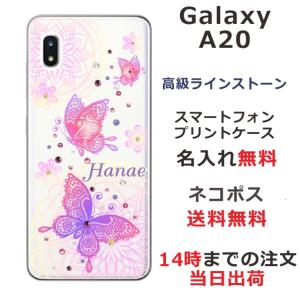 - Galaxy A20 ケース SC-02M SCV46 ギャラクシーA20 カバー ラインストーン かわいい らふら 名入れ フライングバタフライ