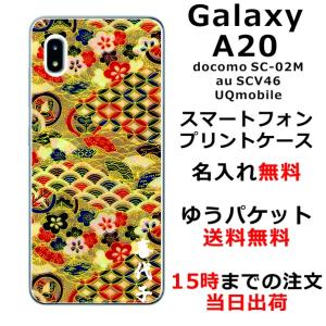 - Galaxy A20 ケース SC-02M SCV46 ギャラクシーA20 カバー らふら 名入れ 和柄 千代紙ゴールド