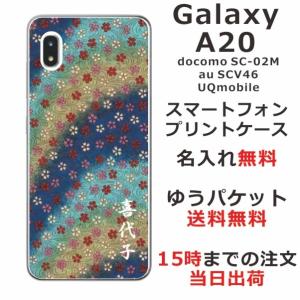 - Galaxy A20 ケース SC-02M SCV46 ギャラクシーA20 カバー らふら 名入れ 和柄 和小花ブルーグラデ