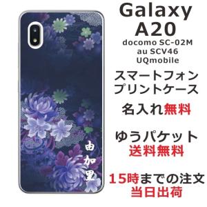 - Galaxy A20 ケース SC-02M SCV46 ギャラクシーA20 カバー らふら 名入れ 和柄 和花青紫グラデ