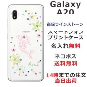 - Galaxy A20 ケース SC-02M SCV46 ギャラクシーA20 カバー ラインストーン かわいい らふら 名入れ ドルフィン