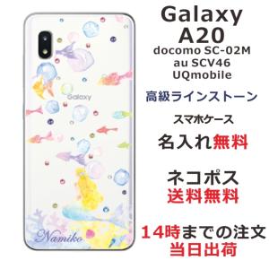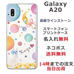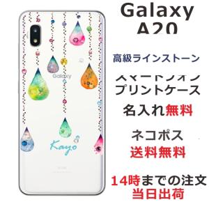 - Galaxy A20 ケース SC-02M SCV46 ギャラクシーA20 カバー ラインストーン かわいい らふら 名入れ カラフルしずく