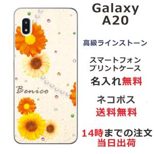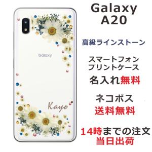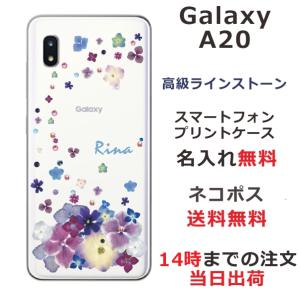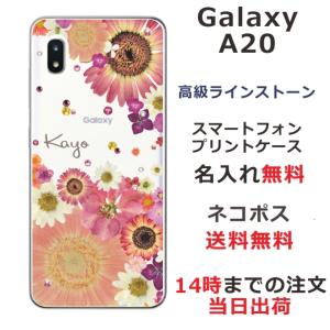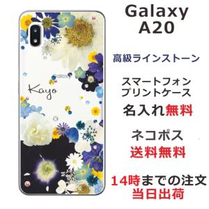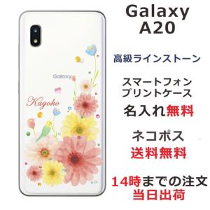 - Galaxy A20 ケース SC-02M SCV46 ギャラクシーA20 カバー ラインストーン かわいい らふら 名入れ ふんわりフラワー インコ